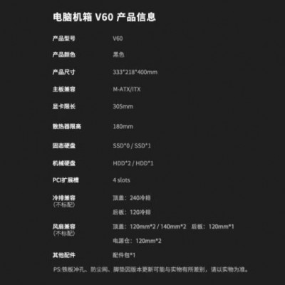 首页 > 电脑配件 > 电脑机箱 > 爱国者V60 海景房机箱全景无立柱MATX高颜值240水冷台式电脑台式机主机箱 黑色(显卡限长305mm)